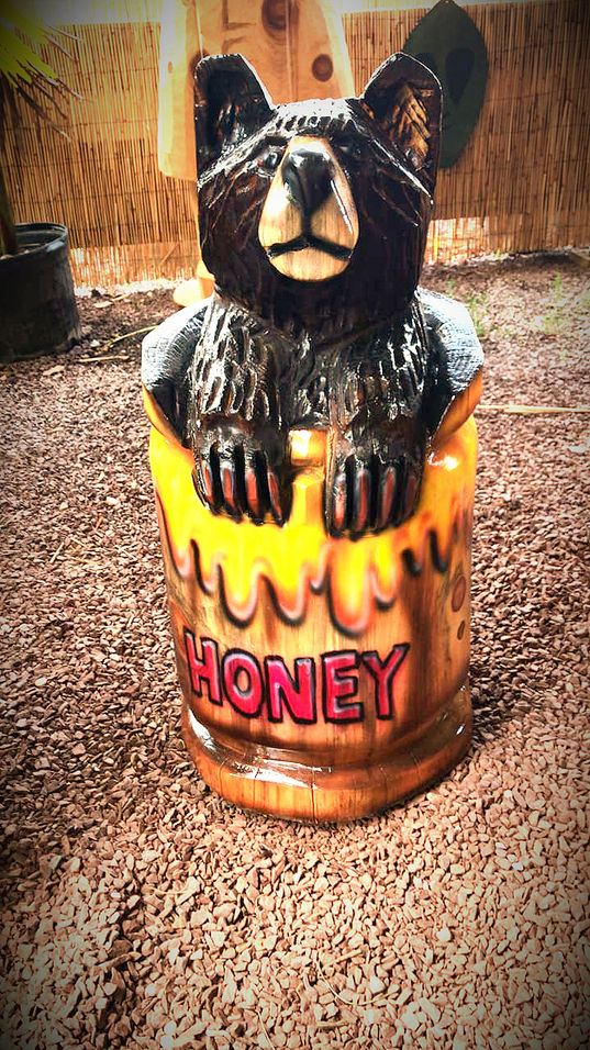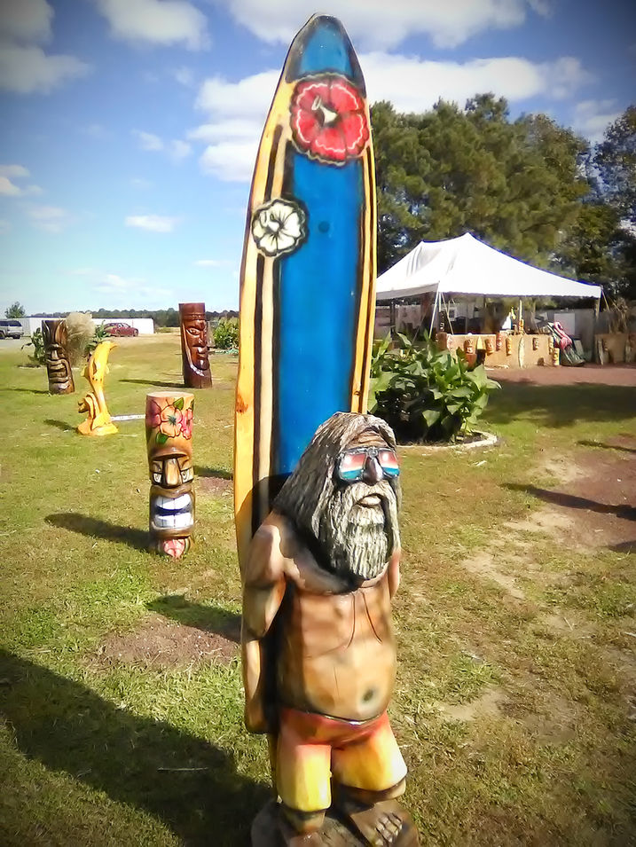 At Tiki Murph, our carvers combine skill and creativity to craft unique, hand-carved figures, from coastal birds like pelicans and parrots to bears, surfers, and fishermen. With over 30 years of experience, each figure is meticulously shaped with a chainsaw to capture lifelike detail. Sue, our airbrush artist, then brings these creations to life with vibrant, custom paintwork. If you find a figure you love, just reach out via our contact form for pricing and pick-up details. Have a custom idea? Fill out our custom orders form.
